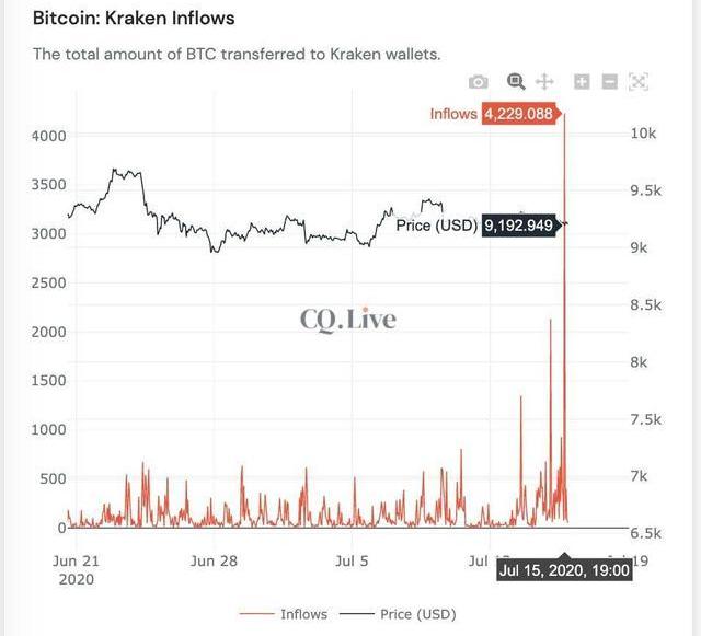 根據主流交易平臺Kraken的數據顯示,周三有4229個比特幣進入交易所,遠遠超過過去幾周500個比特幣的平均數量。