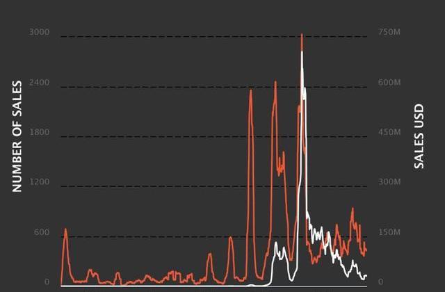 或許你難以理解,這些毫無作用甚至沒有美感的圖片為什么這么值錢?在近期加密寒潮的沖擊下,曾經如日中天的NFT突然跌落神壇,日成交額從巔峰時期的36億美元跌至近期的2億美元。于是有人唏噓:NFT神話破滅了。