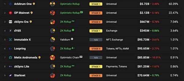到今年6月份,zkSync獲得了一些令人印象深刻的關鍵指標。雖然在6月份zkSync稍微遜色于Arbitrum,但它在TPS上排名第一。它擁有最快的TVL增長率,并且在第一層上總費用支付方面處于領先地位。
