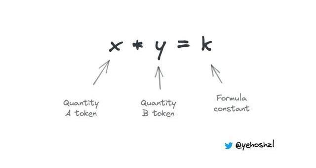 常數乘積公式查看交換發生之前的池資產:池中有多少A代幣和B代幣。然后它通過用A的數量乘以B的數量來創建常數“K”。使用這個常數,就可以用代幣B來計算代幣A的價格。