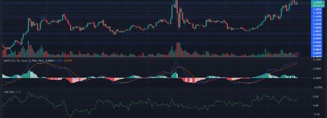 這意味著MATIC的價格會進一步上漲。MACD指示價格動能和反轉。Chaikin資金流向指向資本流入和流出;該指標高于半線,意味著資本流入高于流出。