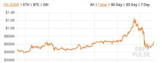 最近的市場崩潰使DeFi協議中鎖定的價值減少了一半以上。這一價值在2月中旬達到了12.4億美元的峰值,但是3月份的市場低迷使它螺旋上升至季度收盤價5.52億美元。