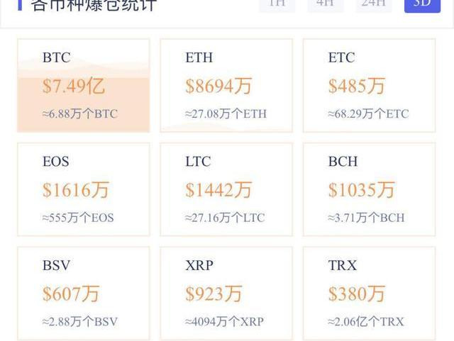 數據來源:合約帝從近三日的爆倉數據來看,僅BTC的爆倉數額就已經高達7.49億美元,占據了很大一部分資金體量。