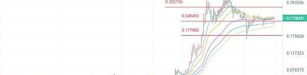 DOT日線EMA可以看到交替下行區間受阻,EMA15和EMA60處于下行交叉階段,MACD縮量減少,DIF地位拐頭有向上趨勢,KDJ向上交叉成型開始發散,日線布林帶向下拐頭,K線離開布林帶下軌上行沖擊中軌,工,眾,號:幣圈院士