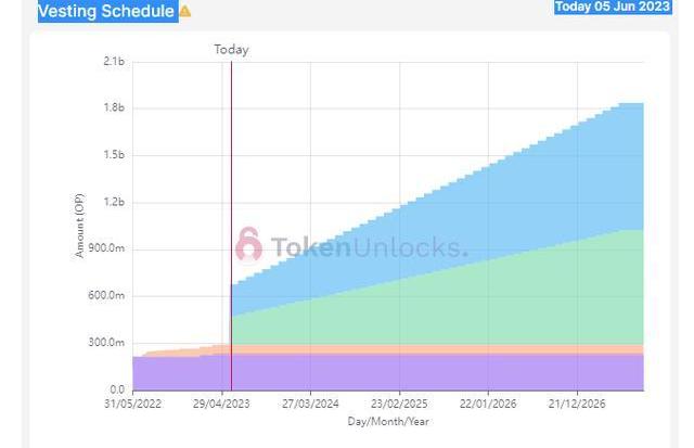 2.OP的解鎖不是單日全部解鎖,而是貫穿未來幾年,并且在未來一年的解鎖量非常大,丟個圖你們自己看一下。因此現在認為OP是底部,或許有點樂觀