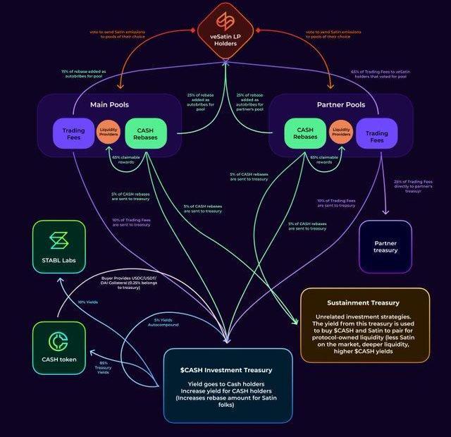 由于Satin會通過分發$CASH的變基獎勵于投票者,收益渠道會比一般的Solidly分叉更廣。