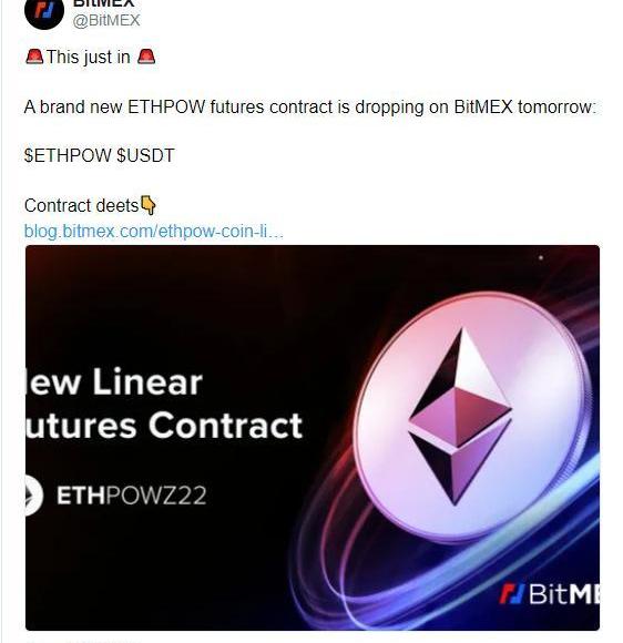 目前已經有以太坊硬分叉Ethereum-PoW的陣營在Twitter上制造相關輿論,BitMEX還推出了ETHPOW期貨合約,讓投資者可以押注這些代幣的未來價格。