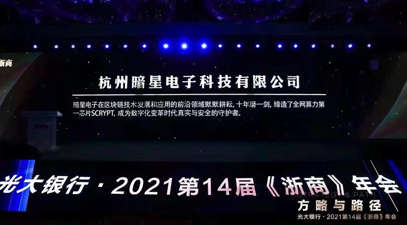 主辦方的頒獎詞寫到:暗星電子在區塊鏈技術發展和應用的前言領域默默耕耘,十年磨一劍,締造了全網算力第一芯片SCRYPT,成為數字化變革時代真實與安全的守護者。