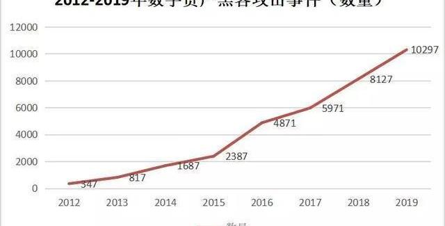在2019年數字資產犯罪案件中,美國占比為28%為全球最多,歐洲占24%,其后為中國占比18%。通過數據統計,從2019年1月至2019年12月中旬,全球約發生超萬次數字資產黑客事件,我國發生的與數字資產相關刑事案件多達2000件。