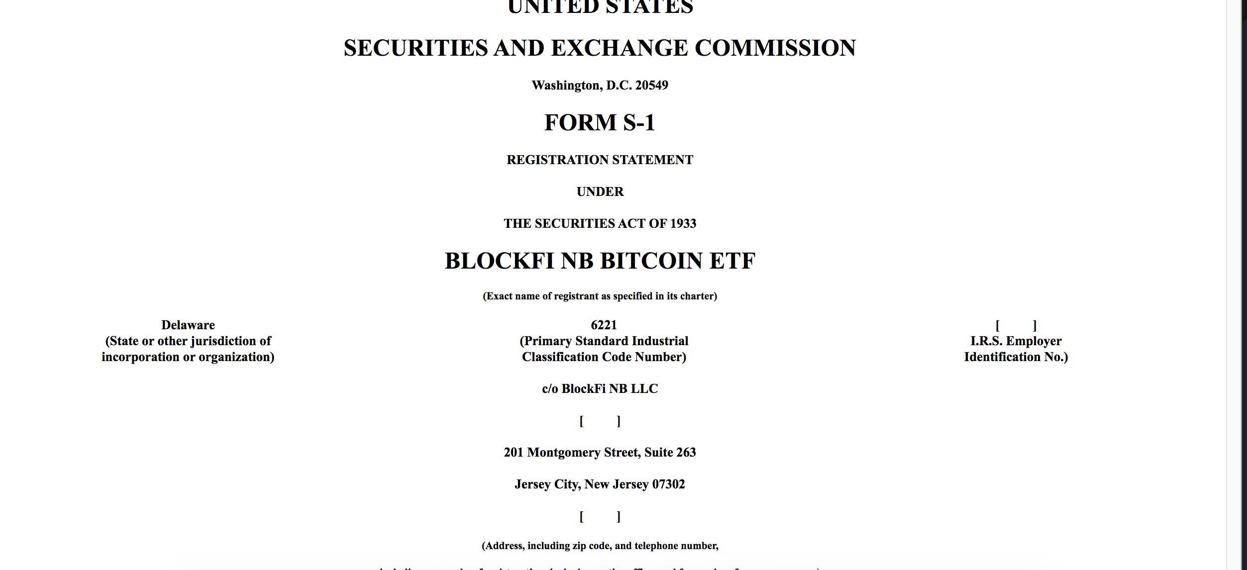 文件稱,BlockFi將擔任托管人,該ETF的投資目標是反映比特幣的基本表現,而不是任何期貨或衍生品。