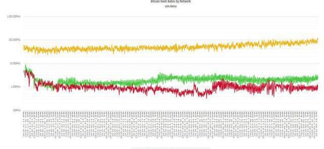 共識強弱體現最直觀的就是分散的總算力大小,我們知道算力是參與比特幣和比特現金挖礦并獲得獎勵回報,算力越大,意味著大家對這個幣種越有信心,即共識程度越強,同時算力越大分布式網絡的安全性也越高,這就會形成正反饋,相反的就會陷入死亡螺旋。