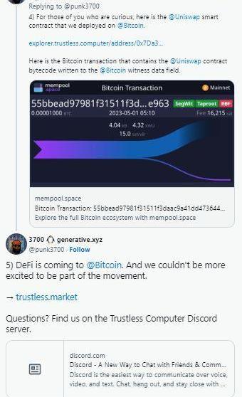 “DeFi即將來到Bitcoin......我們很高興能成為這場運動的一部分,”punk3700說。
