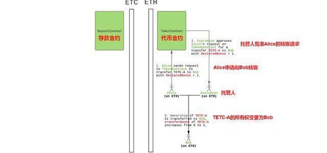 如果Alice希望在以太坊主鏈上使用X枚TETC,那么她需要先在以太坊主鏈上使用代幣合約鑄造X枚TETC-A,然后將等量的ETC存入存款合約并索要她鑄造的TETC;