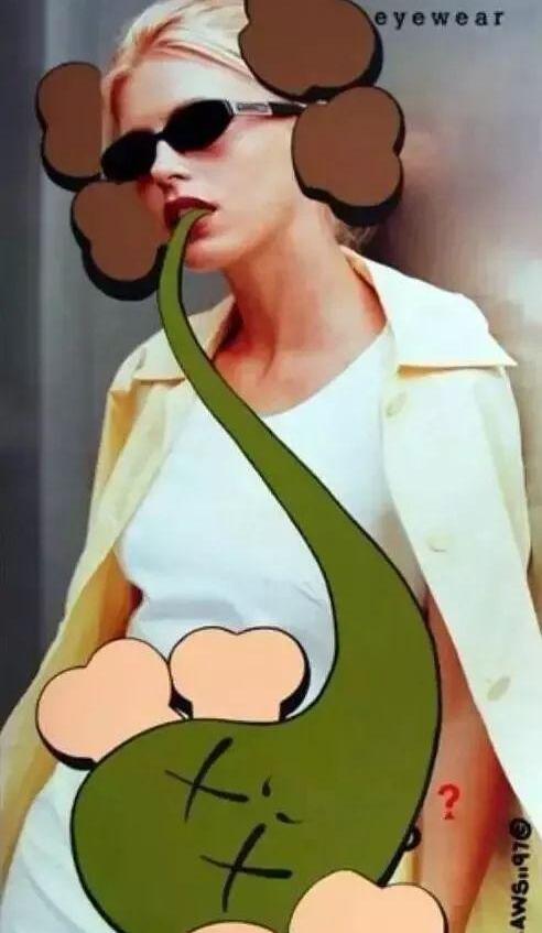 可是后來,開始慢慢的發現KAWS精明的把自己的涂鴉跟廣告結合在一起。KAWS的涂鴉反而為這些廣告增加了趣味性。這波操作,比吳亦凡的《大碗寬面》不知道強了多少倍。仔細想一下,會在街上安放廣告的位置會是什么位置,反正絕不是人員稀少的偏僻之地。而能在這些地方安放廣告的人,會是什么人。這一波操作下來,名聲傳出去了,最重要是有金主注意到這個藝術家了,自然生意就上門了。其實從這成名的方法來看,說他聰明沒什么問題吧?我覺得不僅僅是說要解決吃飯的問題,而是他是真的很想火。因為他在這些廣告牌上留下的不單單是作品,而是帶有很明顯個人風格的作品,甚至可以說是標志。即使一個不懂藝術的人,都能清楚的理解知道的標志。