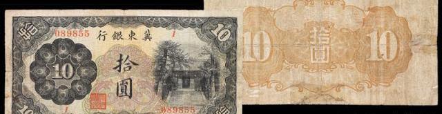 1937年偽冀東銀行拾圓紙幣一枚,存世甚少見,底邊局部修補,七五成新