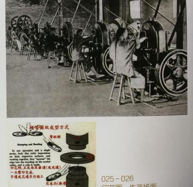 摘自《中國銅元收藏十二講》機制幣的沖壓生產場面。
