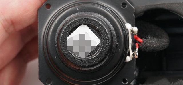 揚聲器振膜特寫,發聲單元由四顆螺絲固定。