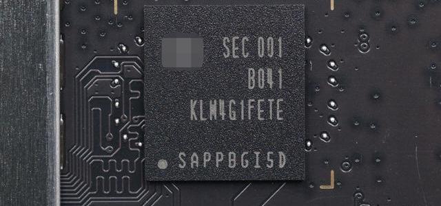 電源管理芯片附近的Samsung三星KLM4G1FETE-B041、eMMC5.1、4GB閃存,用于存儲固件和安裝應用程序。