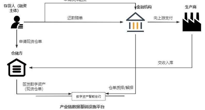 由于實現了數據的標準化,不同參與主體可以充分發揮其優勢和能力,比如倉儲方可以簽發現貨倉單,但缺乏交易流動性,通過平臺可以推到具有流動性和處置能力的現貨貿易平臺或交易所。