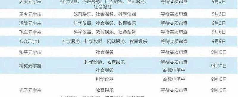 2021年6月,Soul關聯公司申請“年輕人的社交元宇宙”相關商標、愛奇藝智能科技申請注冊“奇遇元宇宙”相關商標;2021年7月,快手關聯公司申請注冊多個“快手元宇宙”相關商標;2021年9月,米哈游申請“米宇宙”的數個商標;騰訊注冊“QQ元宇宙商標”話題沖上微博熱搜;騰訊申請注冊“魔方元宇宙”“和平元宇宙”“精英元宇宙”等累計數量達二十余個相關商標,分類包括教育娛樂、社會服務等;A股中青寶、世紀華通、三七互娛等游戲股暴漲;