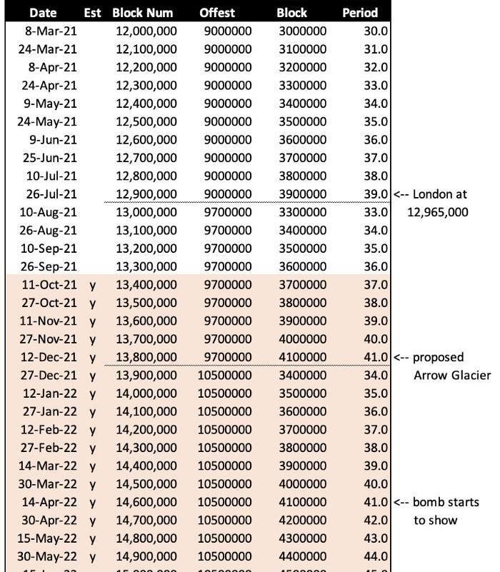 你可以從上面這張圖看出,無論我們早點還是晚點實施“ArrowGlacier”硬分叉,只要我們使用10500000的偏移量,那就對下一次難度炸彈爆炸的時機沒有任何影響。