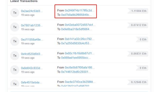 在交易欄里,可以看到多筆該區塊所打包等交易。其中,上邊是付款地址,下邊是接收地址。在付款地址的上方,還有一長串的字符“0x2ae24c53d301b65bb7a0ed811301dabdfaeb9f6063a65318c8198291503afda6”,而點擊這串字符,可以看到這筆交易的詳細記錄。