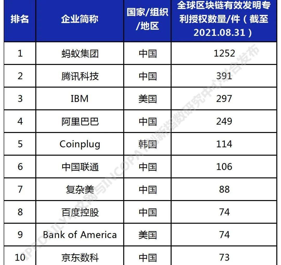 原標題:《2021年全球高相關度區塊鏈授權發明專利排行》