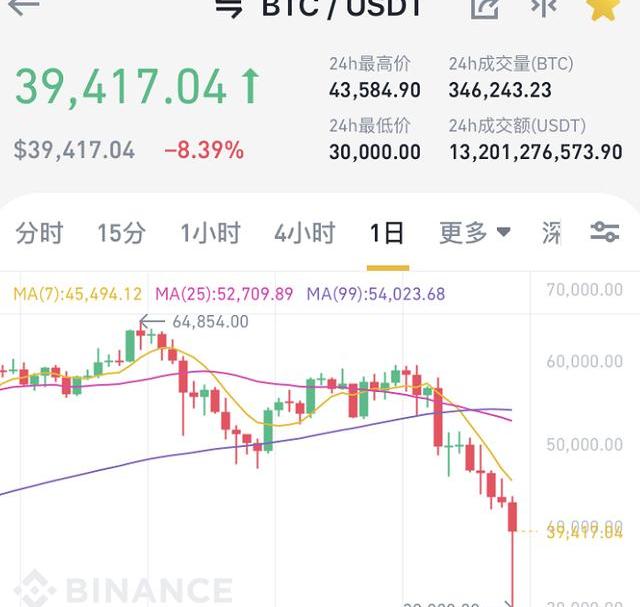 不過,之后加密貨幣市場反攻,跌幅縮小,截至發稿,比特幣價格反彈至3.9萬美元左右,24小時跌幅縮小至8%;以太坊價格為2640美元,跌幅縮小到22%;狗狗幣也重回0.3美元之上。