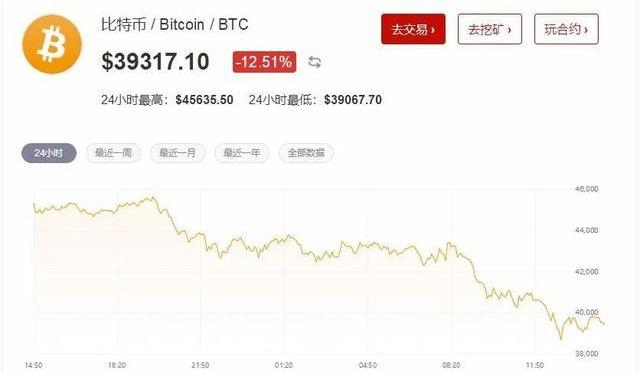 根據境外比特幣交易網站Coinbase數據,截至發稿,比特幣報價39317.1美元,24小時跌幅為12.51%。