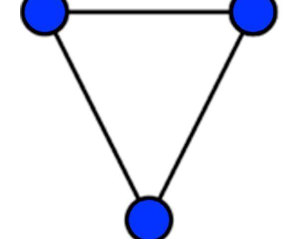 讓我們從圖論說起。最早使用圖這一術語的是英國數學家、律師詹姆斯·約瑟夫·西爾維斯特,他在1878年用化學圖表示數學與化學中分子的關系。圖論中的最基礎最簡單的圖被稱為無向圖或簡單圖,包括節點和邊兩部分,邊是用來形容節點之間的關系。上述語言是圖論的語言,和日常生活中差別不大,比較容易理解。如圖1中是有三個節點三條邊的一個無向圖、簡單圖。所謂無向,指的是邊是沒有方向的,不指向特定的方向;所謂簡單,指的是兩節點之間只能有一條邊連接。