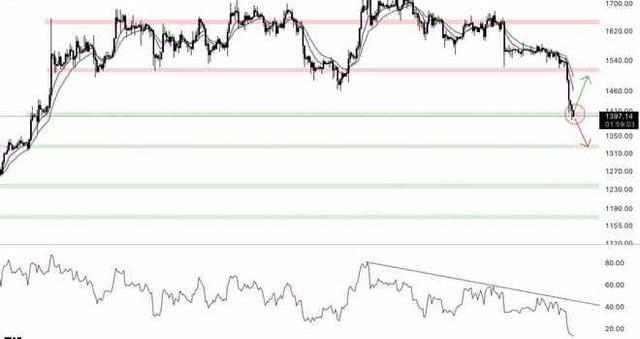 上周,我們提到了該課程是在兩個級別之間構建的。因此,要繼續保持勢頭,有必要維持最后低點1,460美元。一周后,以太坊(ETH)的價格跌破了這一重要技術水平。