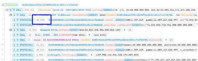 而通過這種更改,可以加快在合約中查找和定義名為“get_y”的新函數的過程,以提高交易效率。也就是說,將搜索過程從“猜測”方法更改為“精確行程”方法,Curve節省了3倍的工作量,這意味著節省了gas。如下圖所示。