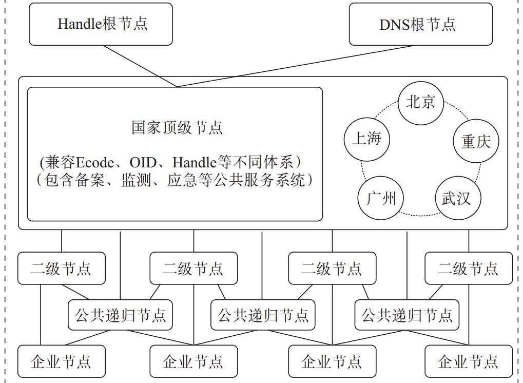 其中,根節點是標識管理體系中最高等級的國際性標識服務節點,提供面向全球范圍或者若干國家/地區的公共的根級別的標識服務。國家頂級節點是一個國家或地區內部最頂級的標識服務節點,能夠面向全國/全區范圍提供標識注冊分配、標識解析、審核認證及數據托管等服務。