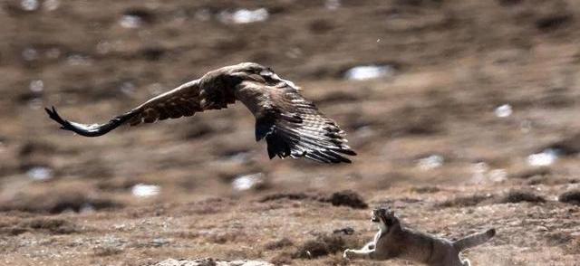 草原雕搶走了兔猻的食物,兔猻心有不甘又無能為力。兔猻能攆著鷹跑,說明它戰斗力十足。