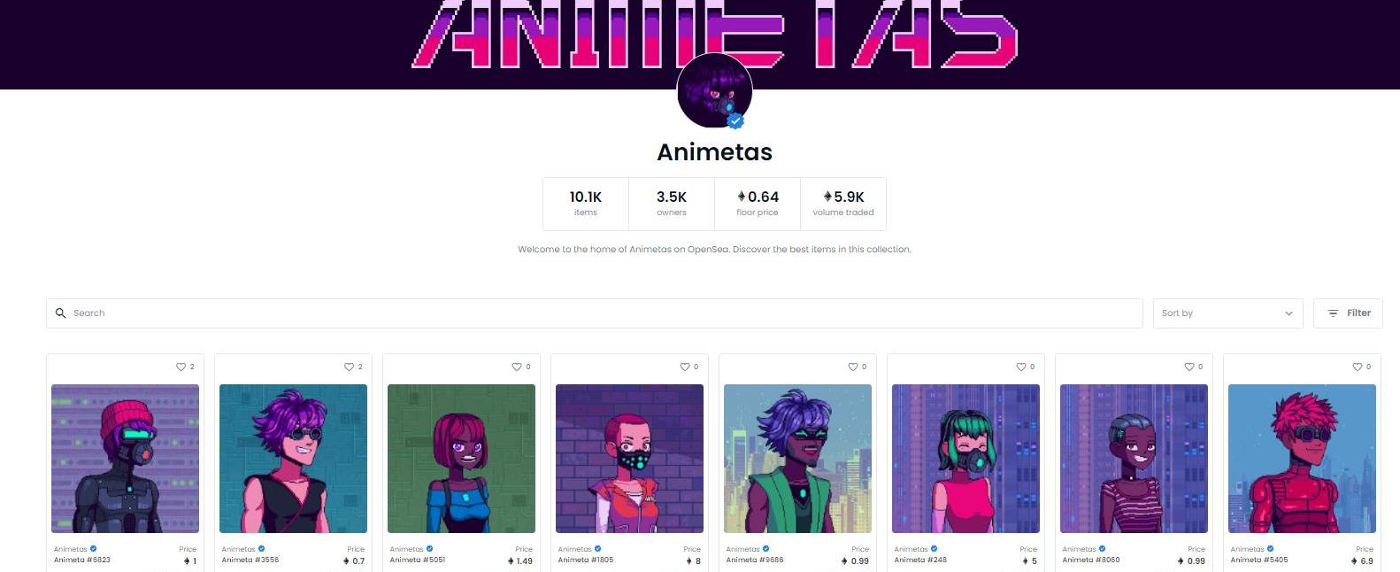 排名第9,Animetas,畫風很動漫,適合做頭像,最低價格0.64枚ETH。