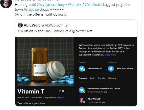 沒有人可以從推特處購買者140件NFT中的任何一件,但可以通過回復推特的推文概率獲得。