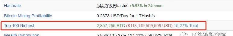 相反,比特幣就差遠了,前100持幣地址只占總流通的15.27%
