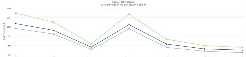 根據北京時間16:00的數據,如果用戶想要以較低的速度打包自己的交易,僅需支付31gwei;如果想要以平均速度打包交易,需要支付40gwei的Gas價格;如果想要快速地打包交易,需要支付47gwei。