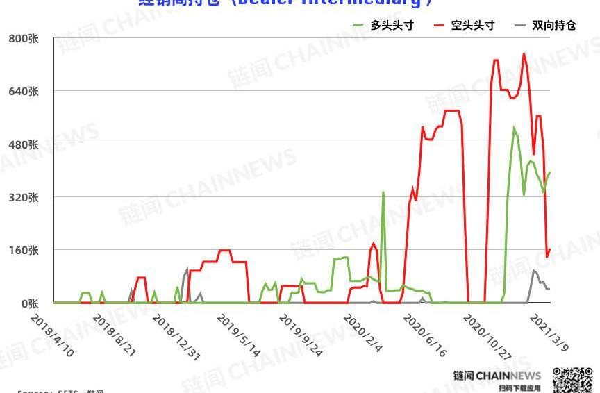 資管機構持倉多頭頭寸自323張進一步上升至331張,空頭頭寸自643張下降至619張,雙向持倉自0張上升至15張。資管機構在最新統計周期內「接棒」經銷商賬戶進行了明確的凈多調倉。而這也是這類賬戶時隔整整一個月后首度進行了凈多的倉位調整,可以說資管機構用實際行動為最近這輪回調畫上了句號。