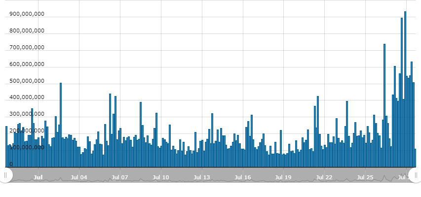 這考慮到了基于以太坊,波場和Omni層轉移的所有USDT,OMNI層是比特幣區塊鏈本身上的彩色幣協議。通過USDT結算的價值增長也主要歸因于交易所間結算和去中心化金融領域。