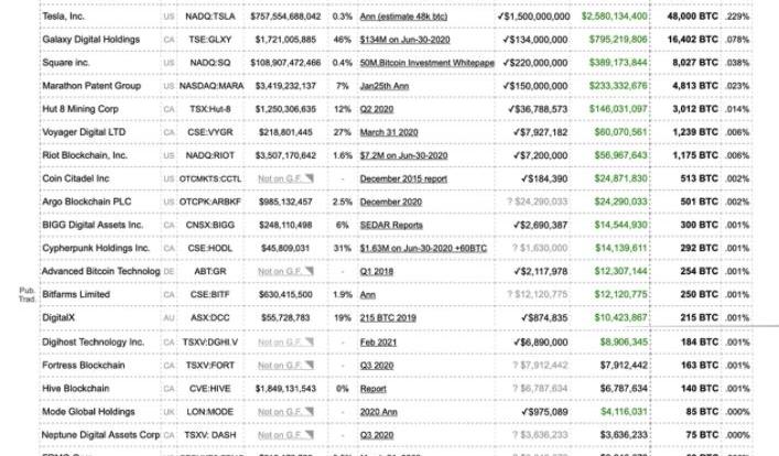XRP/HKD-5.57%3月2日,根據門戶網站bitcointreasuries.org的數據,目前有42家公司持有價值超過650億美元的比特幣。2020年底,有29家公司持有約110萬枚比特幣,按12月28日的匯率計算,價值超過300億美元。此外,當時這29家公司擁有全部2100萬比特幣供應量的5.48%。而截至目前,總共42家公司持有1,350,024枚比特幣,占2100萬比特幣供應量的6.43%,價值650億美元。