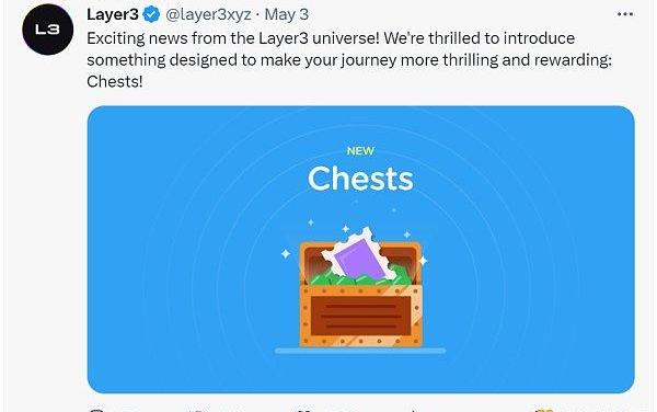 近期Layer3最亮眼的功能莫過于Chest,中文釋義為寶箱,以游戲的形式讓用戶置身其中。