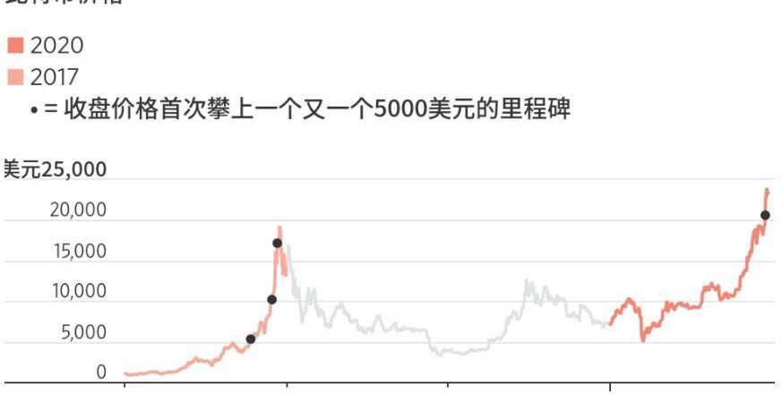 在2017年一度逼近20000美元之后,比特幣的價格在2020年尾聲終于又升破了這一關口。