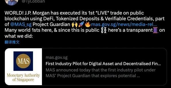 如今,當前全球眾多金融機構與科技企業都在布局?RWA?賽道。其中最受關注的?RWA?代幣化嘗試是?2022?年年底新加坡金融管理局宣布的“機構級?DeFi?協議的第一個真實世界用例”,即由摩根大通、星展銀行和?SBI?數字資產控股公司針對由代幣化的新加坡政府證券債券、日本政府債券、日元和新加坡元組成的流動性池進行外匯和政府債券交易。該試點最終由摩根大通使用?Polygon?網絡的?Aave?協議完成第一筆基于?DeFi?協議的外匯和政府債券交易,證明了在沒有任何金融中介參與的情況下,金融交易也可以順利在公共區塊鏈上完成。
