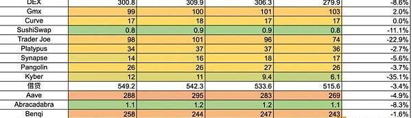 從近七日的數據看,在以太坊二層網絡的核心公鏈中,Optimism?本周下跌為?1.9%?,Arbitrum?上漲?1.65%?,Polygon?下跌?1%?,Avalanche?下跌?2.87%?。