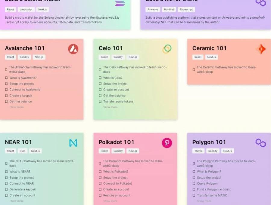 Learn?Web3旨在讓更多開發者加入Web3,根據開發者資深程度設置了相應的課程。