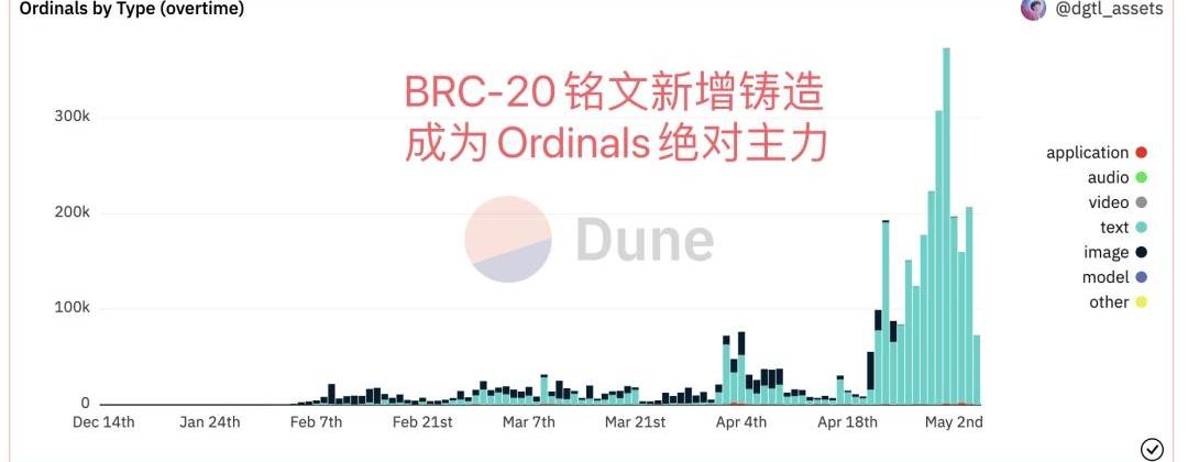 隨著幣圈的發展,圈內對信息的敏感度變高,炒新不炒舊已成為常態。減半背景雖然并不能實際上對邊際供應量產生較大改變,但是疊加?BTC-NFT?和?BRC-20、閃電網絡等一些新的變量后,或許能煥發出新的生機。22?年?7?月我曾寫過一篇《比特幣和美股的相關性是一張紙嗎?》,當時就提到“比特幣所表現出的各種敘事線是在不斷轉化的..數字黃金、投機屬性、商品屬性、證券屬性、避險資產等..多維的敘事面是對抗比特幣熊市最好的良藥”。如今,我們又看到一條比特幣可以承載的新敘事——ordinals。