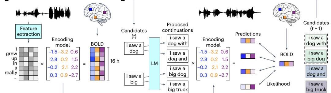 腦部活動就像是加密過的信號,而經過預訓練的大型語言模型提供了破譯的途徑。