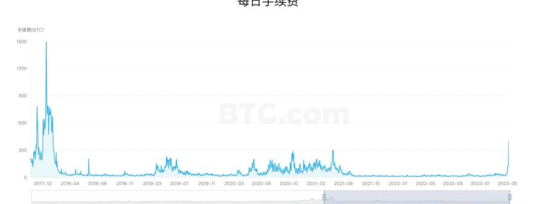 XRP/HKD-2.6%隨著近兩周BRC-20走熱,比特幣交易費用飆升。