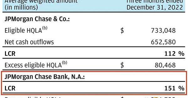 監管機構進一步鼓勵銀行將LCR的上限設為100%?,并將125%視為足夠的緩沖來應對任何系統性災難。大多數金融機構都遵循了這一規定,大部分銀行將其LCR提高至125%并保持不變,如摩根大通。